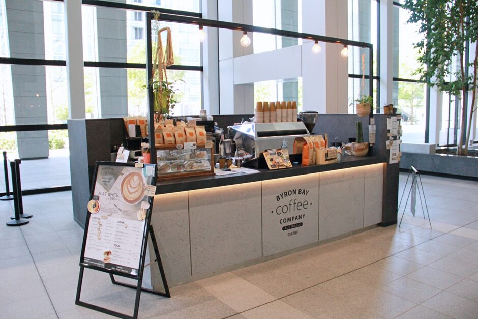 「BYRON BAY COFFEE みなとみらい店」は、みなとみらいセンタービル内にあるカフェです。テイクアウト中心ですが、座れるスペースもあるので、ちょっとした休憩にもおすすめ。
