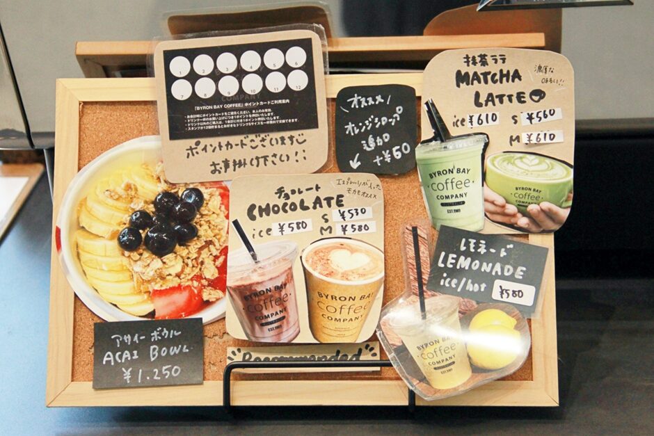 オーガニックコーヒーが楽しめる「BYRON BAY COFFEE みなとみらい店」のメニュー