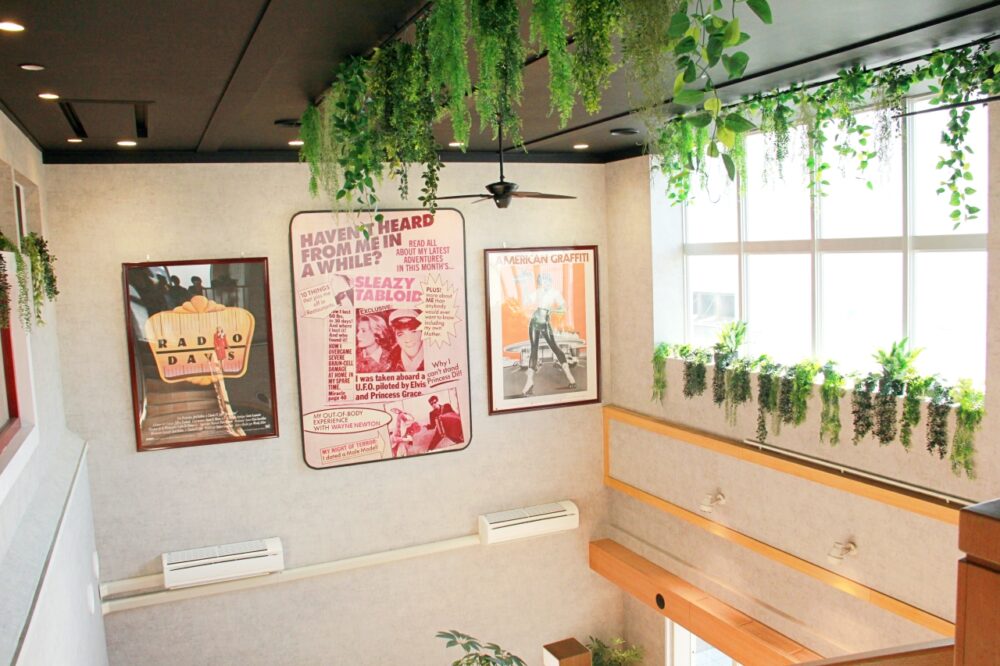 「2階もありますよ」と声をかけていただき、階段を上がっていくと、そのエリアもおしゃれな雰囲気。さり気なくグリーンも飾られていて、ここならゆっくり、心地よく過ごせそうだなと感じました。