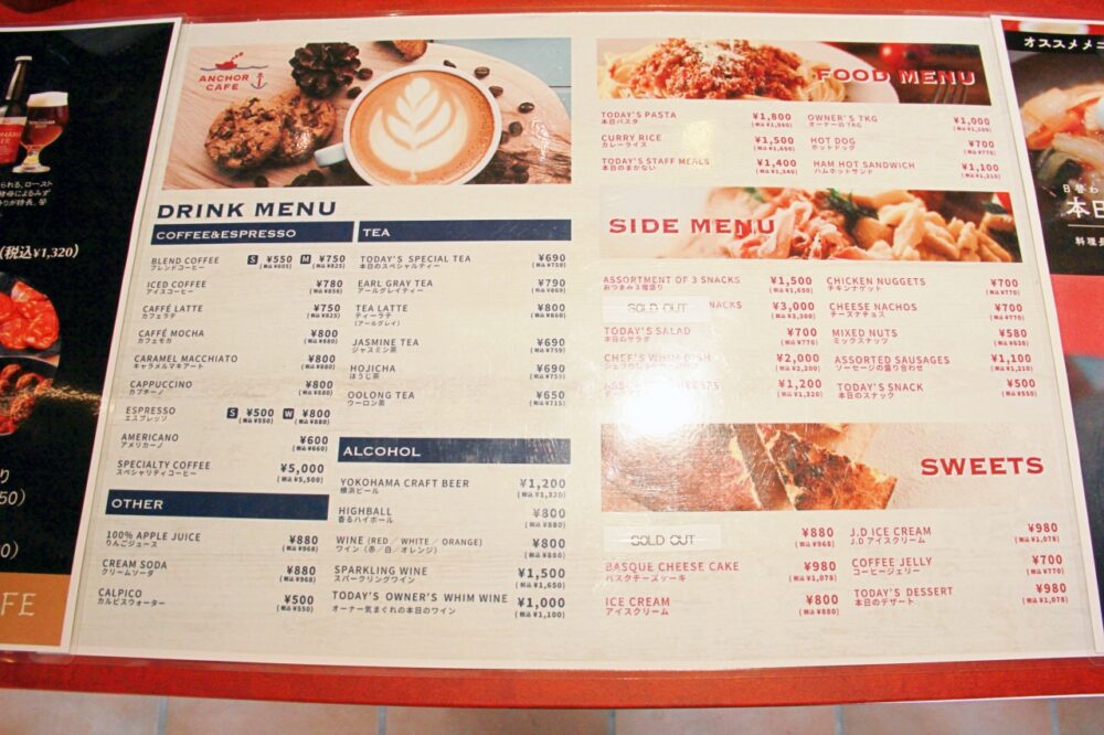 フードやサイドメニューも充実している「ANCHOR CAFE」のメニュー