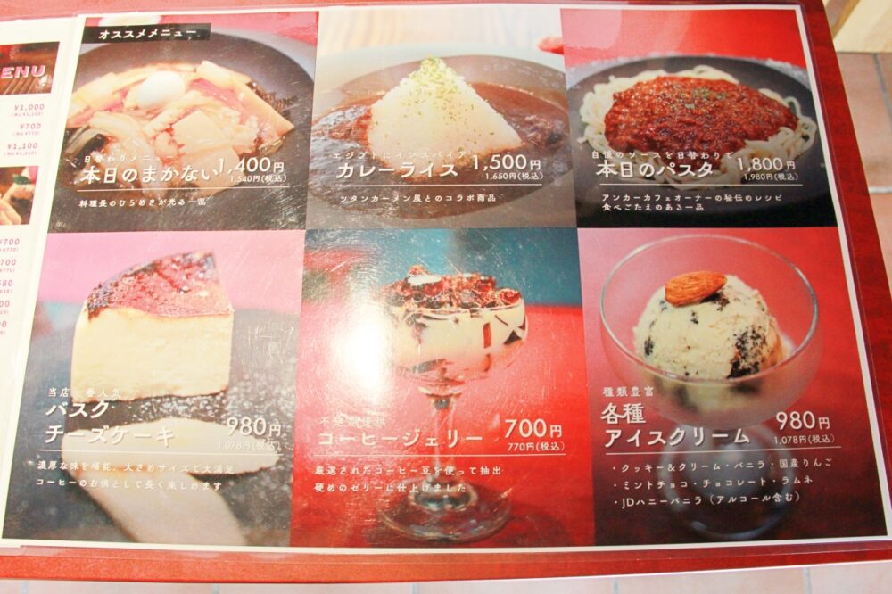 「ANCHOR CAFE」のドリンクはコーヒーや紅茶、ジュースとベーシックで選びやすいラインナップ。フードはパスタやカレー、ホットドッグとカフェメニューが揃っています。