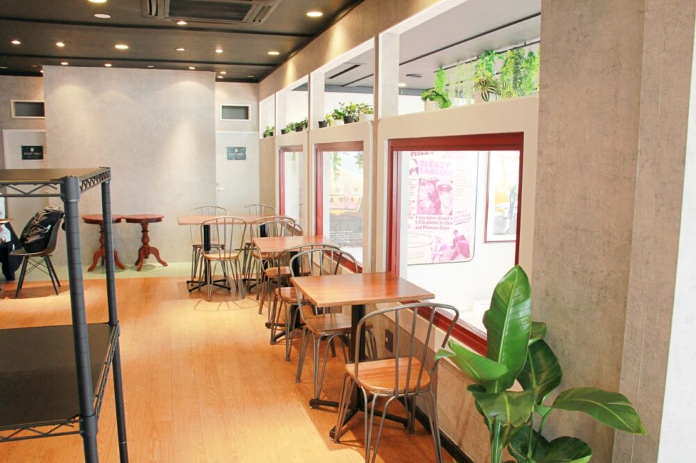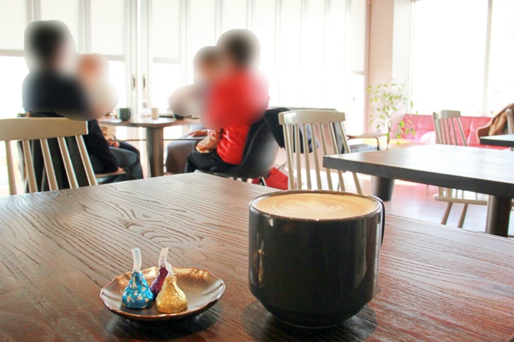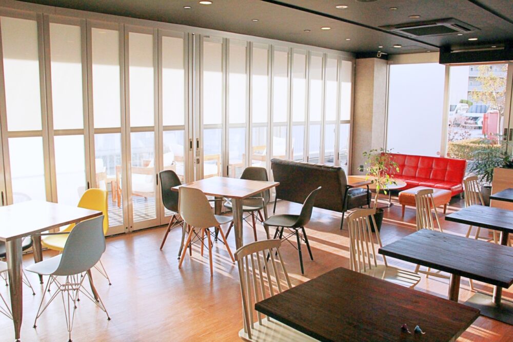 メインとなるカフェスペースは、自然光がたっぷりと降り注ぐ、ゆったりとした空間。席の間隔にも余裕があり、落ち着いて過ごせるのが印象的です。