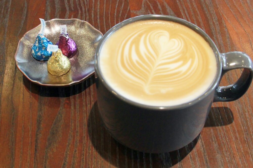 今回注文したのは、カフェラテです。きれいなリーフ模様で、注文してすぐに丁寧に作ってくれました。