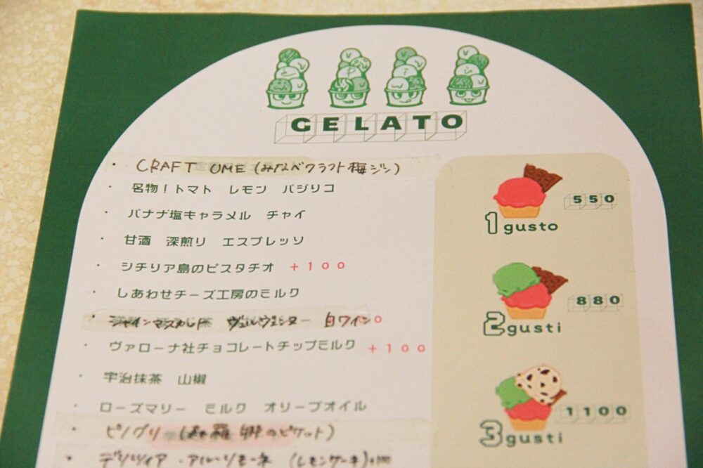 ワイン好きにうれしい ピノグリ、イタリアンドルチェを再現した デリツィア・アル・リモーネ など、魅力的なジェラートが並びます。