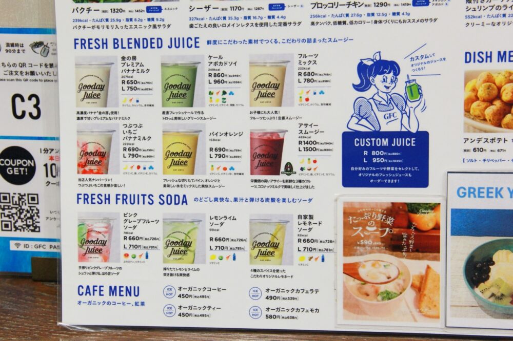 3階フロアにあるトマトのキッチンカーのフレッシュジュース専門店「GoodayJuice」の姉妹店でもあります。