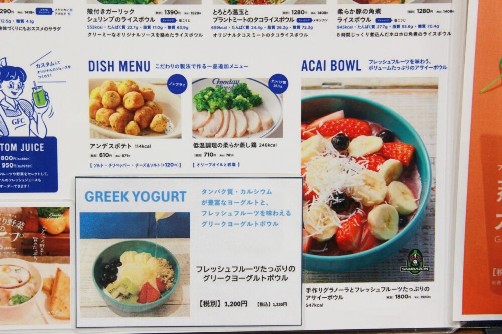 どれもおいしそうな「Gooday Fresh Cafe」のメニュー