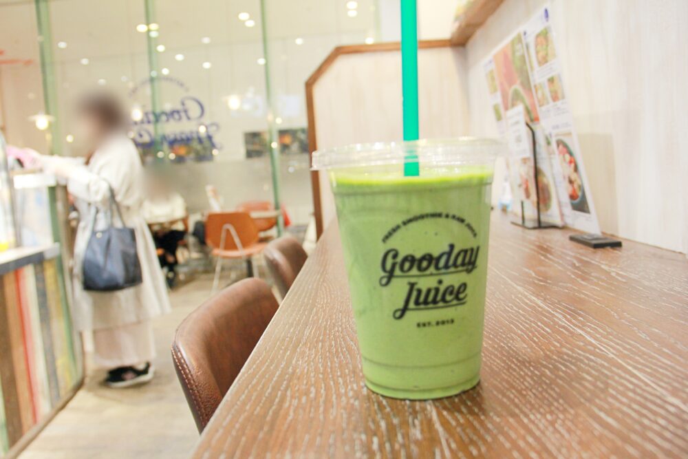 スムージーだと少し体が冷えてしまうかな……と心配していたのですが「Gooday Fresh Cafe」のスムージーは、氷がたっぷり入っているタイプではなく、どちらかというとフレッシュジュースに近い感覚。