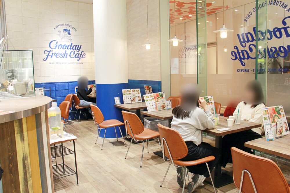 明るく過ごしやすい「Gooday Fresh Cafe」の店内