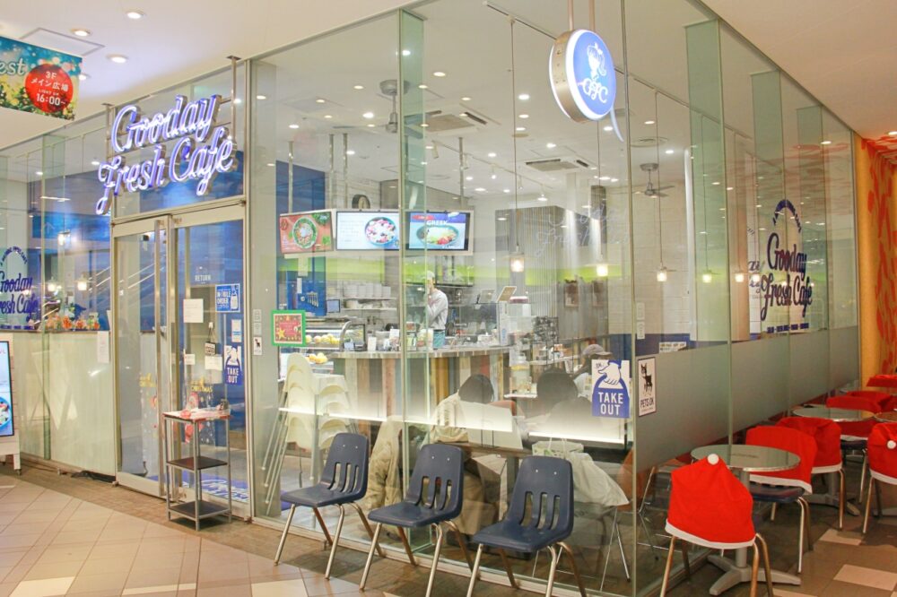 「Gooday Fresh Cafe」は、横浜ベイクォータ4階にある、フレッシュな野菜やフルーツを使ったサラダやスムージーが楽しめるカフェです。