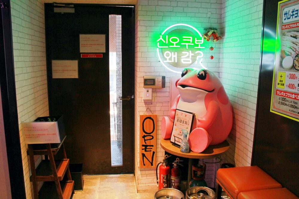 エレベーターで4階に上がると、すぐ目の前に韓国語の文字。かわいらしいカエルもお出迎えしてくれます。