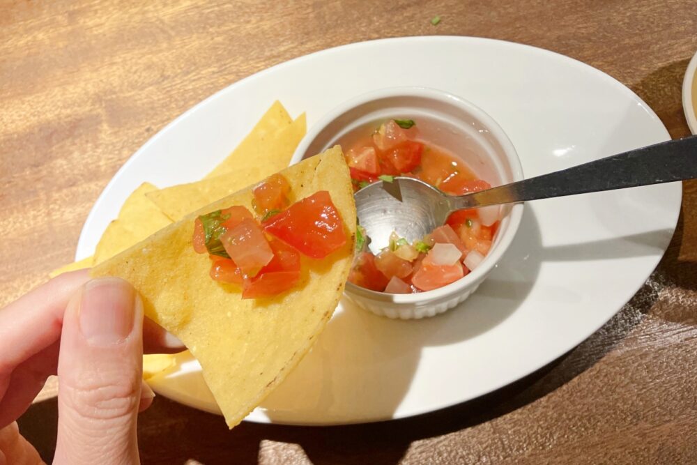 一緒に頼んだのは、ピリッと辛みの効いたサルサが添えられたチップス。