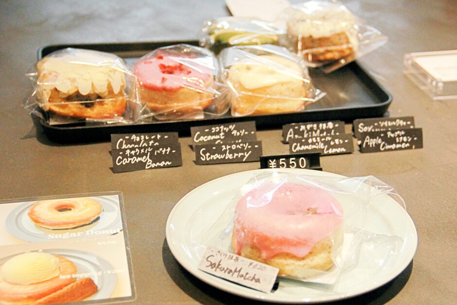 季節のおすすめはさくら抹茶のドーナツですね。かわいらしいピンクのグラサージュが気分あがりますね。しかも、アイスをトッピングすることも可能。ドーナツだけでは物足りないときにおすすめです。