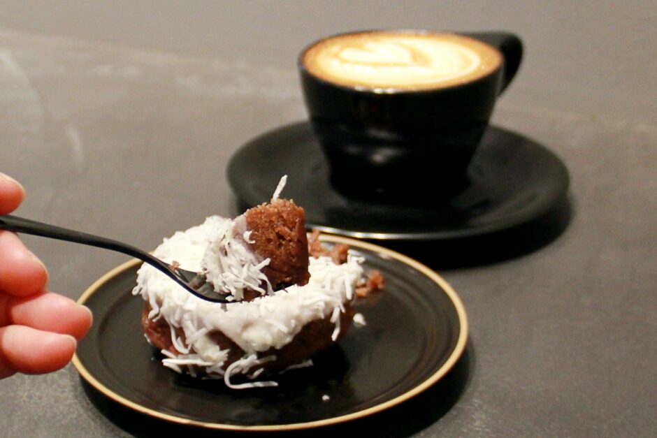 ドーナツは、ホロホロと柔らかくて、口の中ですっとほぐれていきます。ココナッツロングがたっぷりのっているので、食べ応えも◎。