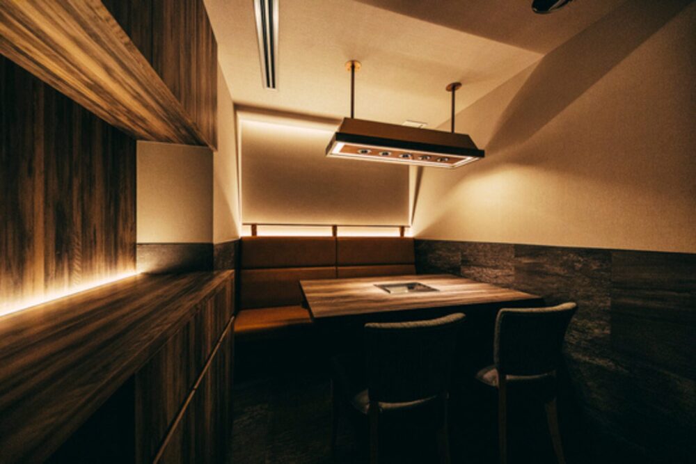 店内は、シックなインテリアでまとめられ、ゆっくり食事ができる雰囲気。座席は、プライベート感のある個室もあります。