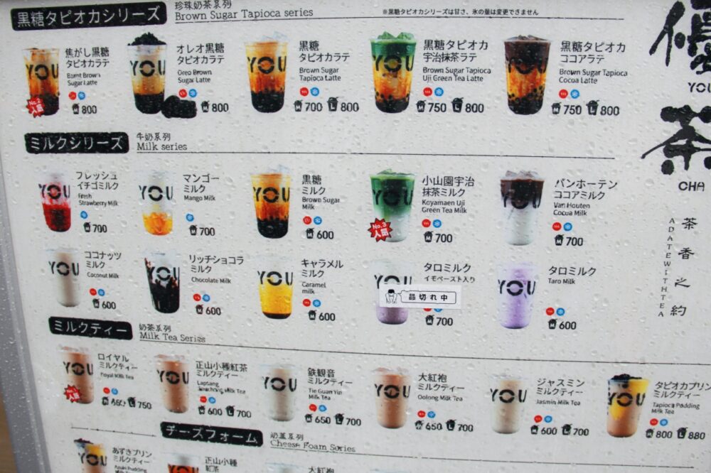 「優茶(YOUCHA)」では、本格的なタピオカドリンクが種類豊富にラインナップ。