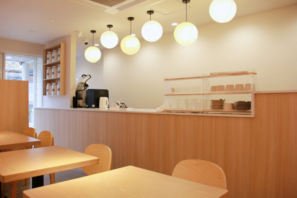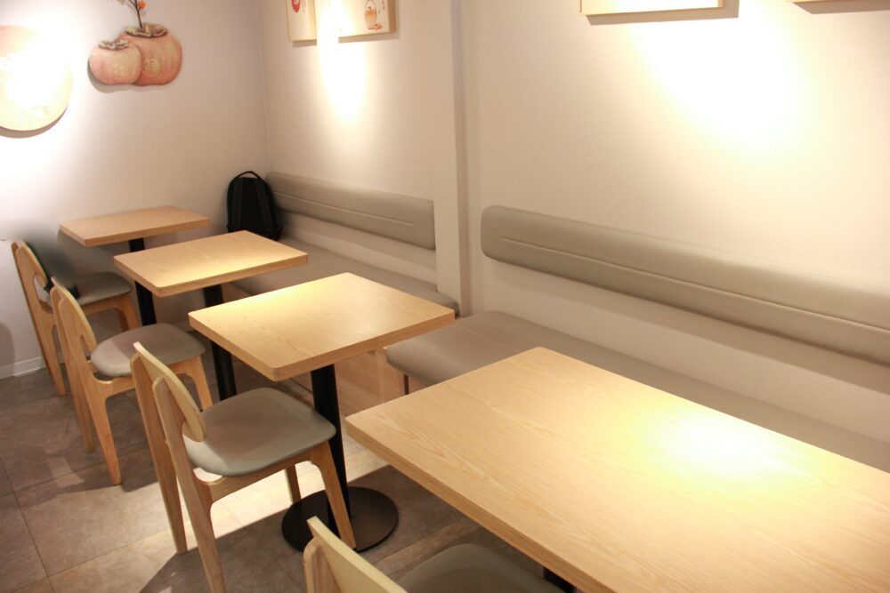 ベンチシートが用意されており、ひとりでのんびり過ごすのにも、友人とおしゃべりを楽しむのにもぴったりな「優茶」の店内。決して広々とした空間ではありませんが、その分、ゆったりと落ち着ける雰囲気です。