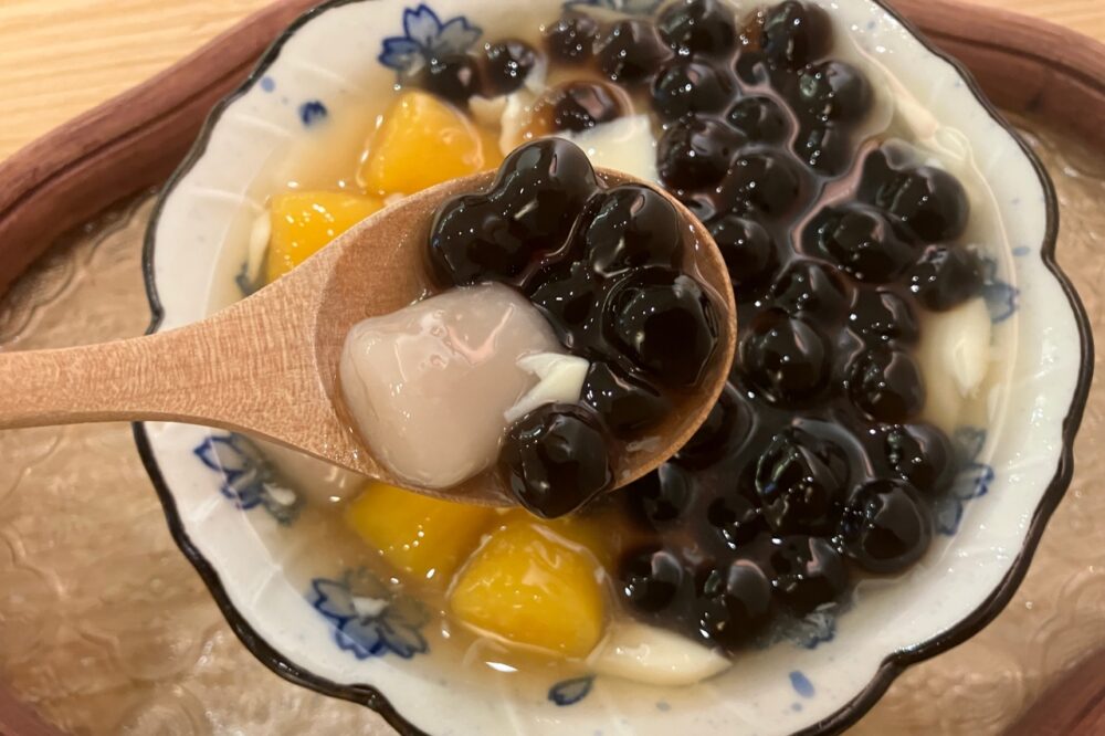 今回は、台湾スイーツの定番「芋園豆花」を注文。トッピングは、もちもちのタピオカやもっちり食感の芋園など。